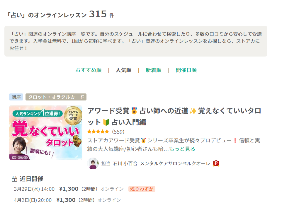 ストアカの「占い人気講師一覧」はこちらからどうぞ↓